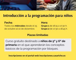 Leer másYa está abierto el plazo de inscripción en un curso de iniciación a la programación dirigido a niños y niñas de 5º y 6º de