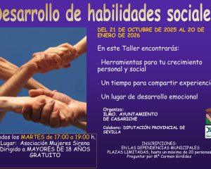 Leer másInformamos que desde hoy están abiertas las inscripciones para apuntarse al nuevo Taller de Desarrollo de Habilidades Sociales. Una actividad puesta en marcha por el