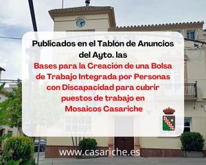 Leer másDesde la Delegación de Empleo informamos que se han publicado tanto en el Tablón de Anuncios del Ayuntamiento como en el E-Tablón las Bases para
