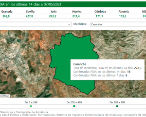 La incidencia acumulada de Casariche ha sufrido un ligero ascenso, situándose en los 279’3 casos por cada 100.000 habitantes. También se ven incrementados los «casos