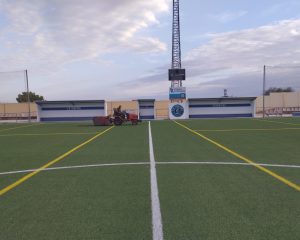 En estos días se han llevado a cabo los trabajos de mantenimiento y cuidado del césped artificial del campo de fútbol, con el fin de