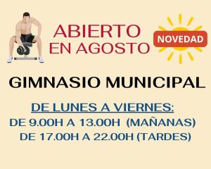 Leer másEste año, como novedad, el Gimnasio Municipal permanecerá abierto durante todo el mes de agosto, ofreciendo a nuestros vecinos y vecinas la posibilidad de mantener