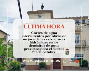 Informamos que, de acuerdo a la información facilitada a este Ayuntamiento por la empresa adjudicataria, el próximo martes 22 de octubre se producirán cortes de