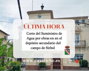 Informamos a todos los vecinos y vecinas de la localidad que se va a producir un corte del suministro de agua como consecuencia de la