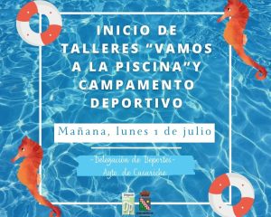 Desde la Delegación de Deportes informamos que mañana lunes, 1 de julio comienzan los talleres del verano «Vamos a la Piscina» y «Campamento Deportivo». En