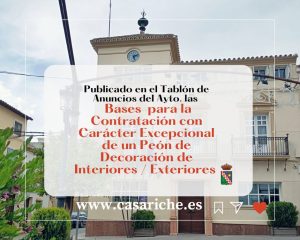 Con carácter excepcional, se han publicado hoy en el Tablón de Anuncios del Ayuntamiento las bases de la convocatoria para la contratación y la creación de