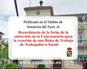 Desde la Delegación de Empleo informamos a todos los vecinos y vecinas de Casariche que ya está disponible, tanto en el Tablón de Anuncios de nuestro