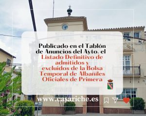 Desde la Delegación de Empleo informamos que ya se encuentra disponible tanto en el Tablón de Anuncios del Ayuntamiento como en el E- Tablón la Relación