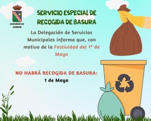 La Delegación de Servicios Municipales del Ayuntamiento informa que, con motivo de la festividad del 1 de mayo, Día de todos los trabajadores y trabajadoras, la
