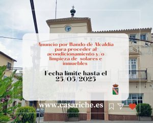 Desde la Delegación de Medio Ambiente del Ayuntamiento de Casariche, se informa a través de un bando municipal a todos aquellos propietarios de SOLARES Y/O INMUEBLES, que