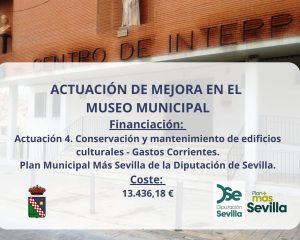 El Ayuntamiento de Casariche ha actuado en el Museo Municipal con cargo a la Actuación 4. Conservación y mantenimiento de edificios culturales – Gastos Corrientes,