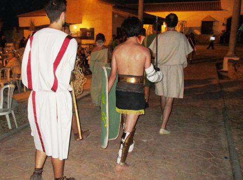 Por otro lado, la LEGIO PRIMA VERNÁCULA de Gilena, nos ofreció el Espectáculo Aqua Romana, haciendo una recreación de la explotación en las Canteras Romanas, con esclavos, sobre cómo se labraba la piedra, se extraía y se transportaba en aquella época. No faltaron tampoco distintos tipos de soldados que controlaban los trabajos de explotación de la cantera, generalmente vinculados a obras de construcción de canales de agua.