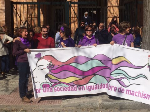 Nuestro Alcalde, Basilio Carrión, aprovechando su visita a la Delegada de Educación para tratar temas relacionados con cuestiones educativas en Casariche, se sumó ayer 8 de Marzo en Sevilla a la concentración celebrada en la Delegación de Educación en el marco de los actos por el Día Internacional de la Mujer, portando una pancarta con el lema «Por una sociedad en igualdad, libre de machismo», reivindicando la necesidad de que exista una igualdad real y efectiva entre mujeres y hombres.