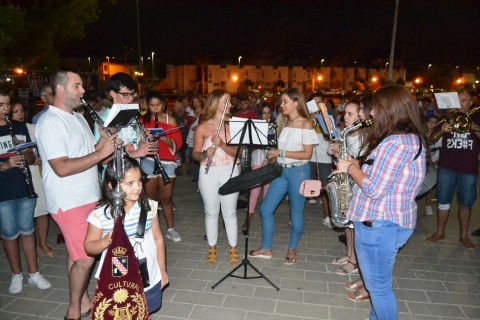 El acto tuvo lugar ayer miércoles 26 de Julio a las diez de la noche y contó, como viene siendo habitual, con el acompañamiento musical de la Asociación Cultural Musical Maestro Vitito de nuestra localidad, que interpretó para la ocasión dos pasodobles, la Entrada y Mi Casariche, y el Himno de Andalucia.