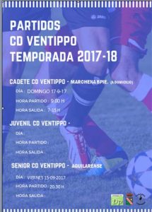 Os facilitamos los partidos del CD Ventippo Temporada 2017-2018, en sus diferentes categorías, para este fin de semana.