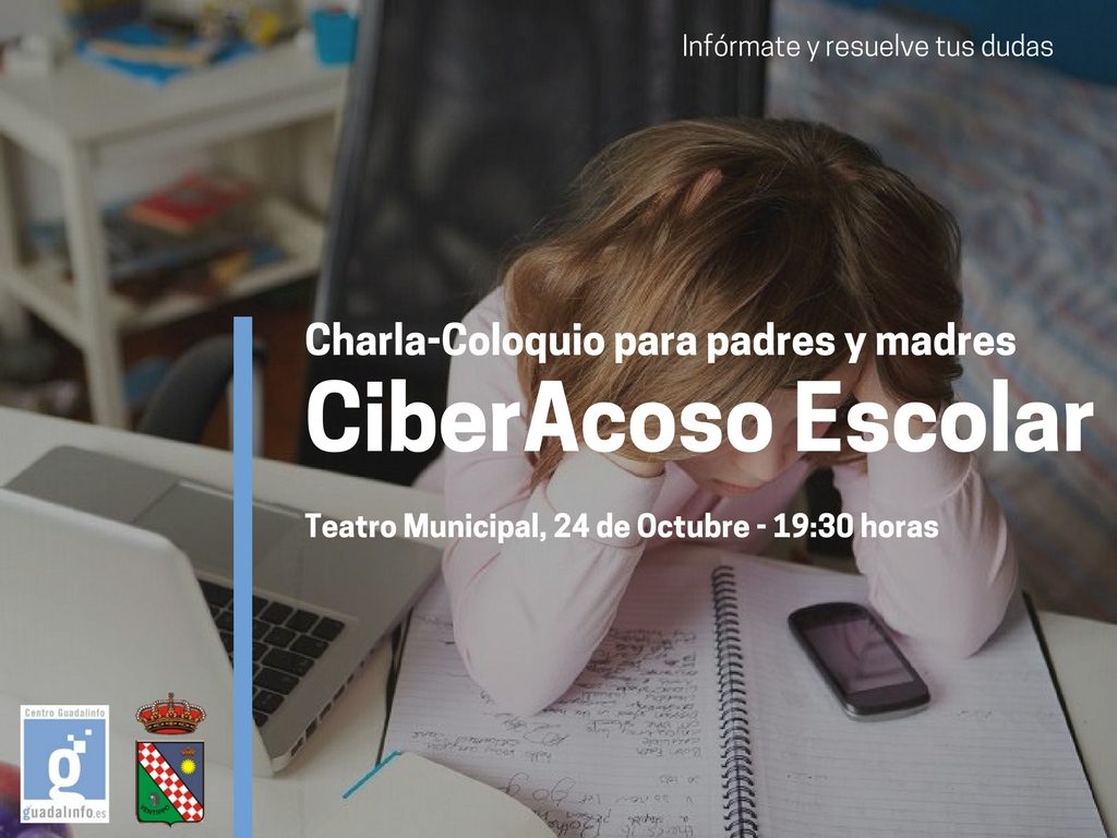 El martes 24 de Octubre a las 19:30 horas, el Teatro Municipal acogerá una Charla-Coloquio sobre CiberAcoso Escolar orientada a padres y madres.