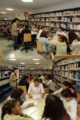Nuestra Biblioteca Pública “Marcos Ana” conmemoró el martes 24 de Octubre el Día de la Biblioteca y lo hizo con el alumnado de 1º de ESO (1A-1) del IES Atalaya, que tomó parte en un Taller de consignas de escritura creativa, titulado «PALOEMA», conducido por Mª José Moriana, en colaboración con Cecilia López, Profesora de Lengua y Literatura de nuestro instituto.