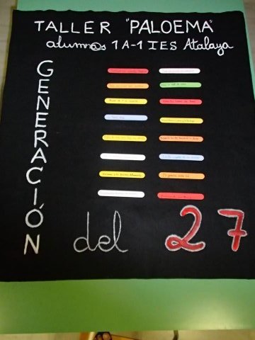 Según ha señalado, «este taller ha servido para poner de manifiesto los conocimientos que los alumnos y alumnas tienen acerca de los poemas escritos por los diferentes poetas de la Generación del 27, además de demostrar su excelente actitud en la realización del trabajo, que será evaluado positivamente por su profesora. Como resultado de la escritura de frases poéticas organizadas aleatoriamente, se ha creado un poema único, que será expuesto en nuestra Biblioteca junto a la foto de la Generación del 27 que tenemos».