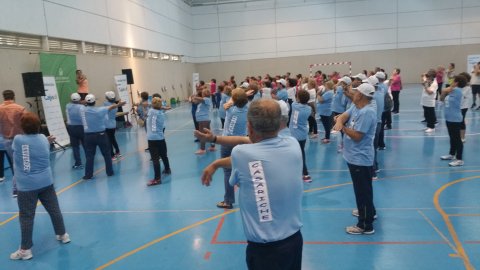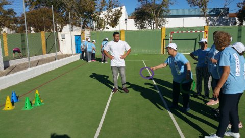 Nuestros mayores pasaron una mañana estupenda ayer jueves 26 de Octubre en Aguadulce participando en el III Encuentro Deportivo de Mayores de la Sierra Sur de Sevilla, que reunió a mayores de 20 localidades sevillanas. Una jornada muy atractiva, en la que los mayores tomaron parte en distintas actividades deportivas, que incluyeron entre otros, gimnasia de mantenimiento, zumba, juegos de petanca, de puntería y de coordinación, balón prisionero, circuito de habilidad motriz y yoga. Seguidamente, realizaron una actividad colectiva de senderismo urbano con visita cultural por el municipio de Aguadulce, y se concluyo el encuentro con un almuerzo de convivencia.