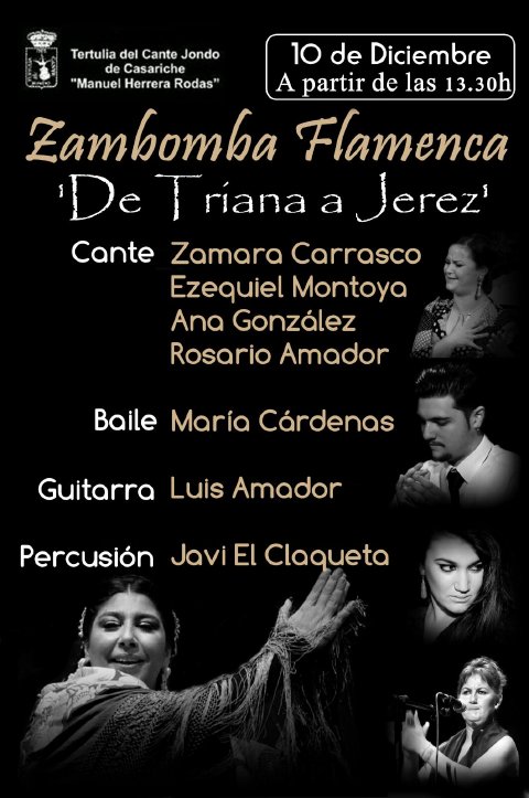 Este domingo día 10 de Diciembre, a partir de las 13:30 horas, la Tertulia del Cante Jondo «Manuel Herrera Rodas» de Casariche acoge la Zambomba Flamenca de «Triana a Jerez».