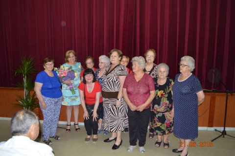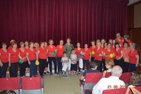 La tarde estuvo genial e incluyó una representación teatral, exhibiciones de baile de salón, sevillanas y gimnasia y la actuación del Coro «Atalaya». También se realizó la entrega diplomas al alumnado de informática y se hizo un reconocimiento a las alumnas del taller de estimulación de la memoria.