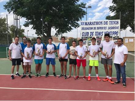 El XIX Maratón de Tenis “Villa de Casariche”, celebrado durante los días 7, 8 y 9 de Septiembre y organizado por el Club de Tenis Ventippo de nuestra localidad, con la colaboración del Excmo. Ayuntamiento de Casariche, ha registrado una participación de diecinueve parejas (9 seniors, 5 infantiles y 5 alevines). Cabe destacar que esta edición ha servido además para estrenar la pista de tenis, tras los trabajos de remodelación llevados a cabo en ella por el Ayuntamiento.