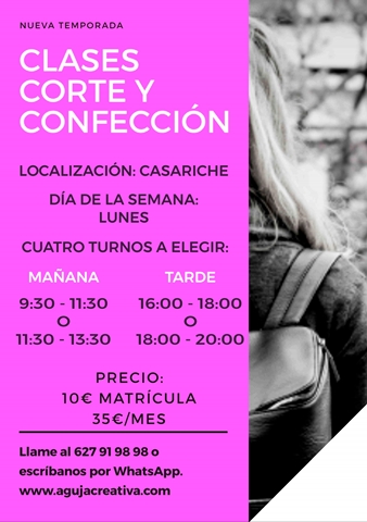 Para más información e inscripciones, puedes llamar al teléfono 627 91 98 98, enviar un whatsapp o consultar www.agujacreativa.com.