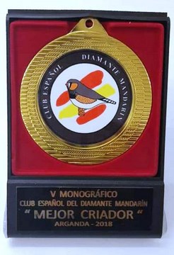 El casaricheño Ismael Moriana Romero ha sido galardonado como «Mejor Criador» en el V Monográfico del Club Español del Diamante Mandarín celebrado en Arganda del Rey (Madrid) los días 12, 13 y 14 de Octubre. Nuestro vecino, que se inició en la crianza de esta especie de ave hace unos seis años, ha triunfado en la quinta edición de este campeonato.