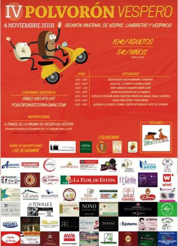 El club Coches y Motos Clásicas Casariche informa que el IV Polvorón Vespero Ciudad De Estepa, un evento en el que se dan cita vespas, lambretas y vespinos, pasará por Casariche el domingo 4 de Noviembre sobre las 11:30 horas de la mañana.