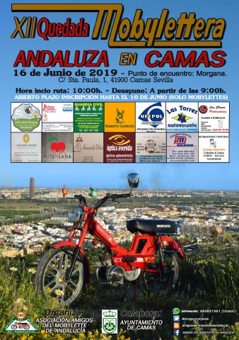 El Club Amigos del Mobylette de Andalucía, con sede en nuestro municipio y que cuenta ya con unos cuarenta socios, celebrará su duodécima QUEDADA MOBYLETTERA ANDALUZA este domingo 16 de Junio en Camas (Sevilla).