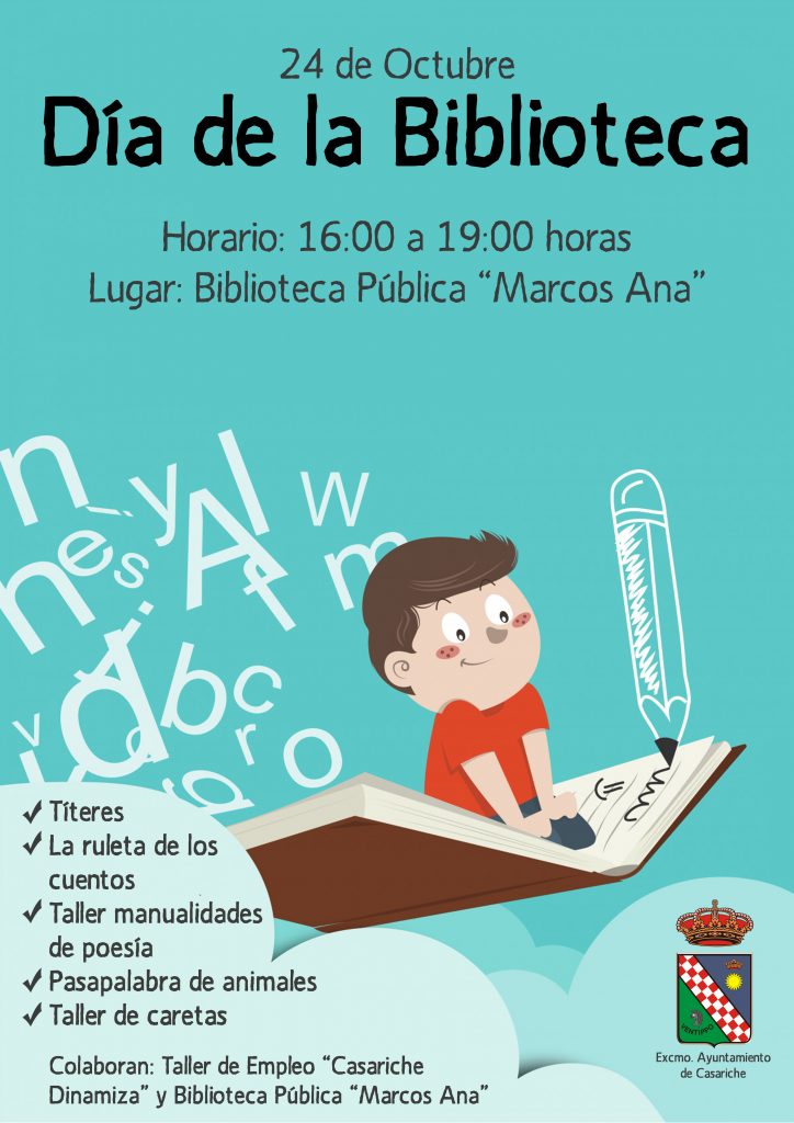 El próximo jueves día 24 de Octubre, con motivo de la celebración del «Día de la Biblioteca» tendrán lugar varias actividades destinadas a los niños y niñas de todas las edades en horario de 16:00 a 19:00 horas en la Biblioteca Pública «Marcos Ana».