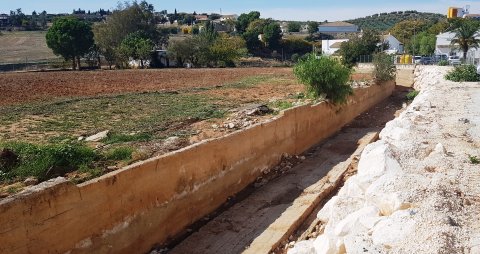La estructura construida ocupará una superficie aproximada de 2.400 m2, donde el lecho del cauce, y los taludes, hasta una altura de 3 m, estarán recubiertos de los bloques de escollera mencionados, de forma que las futuras riadas no puedan socavar las tierras provocando deslizamientos, o amenazando la estabilidad de las vías de comunicación o zonas edificadas.
