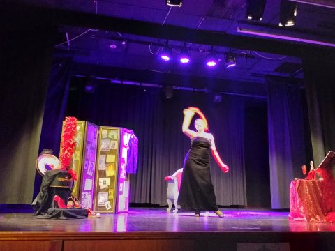El Teatro Municipal se llenó de carcajadas durante el musical «Historias de Cabaret», protagonizado por la actriz y cantante Paz de Alarcón, que mezclando anécdotas propias, escuchadas o presenciadas en primera persona, transmitió historias reales, actuales, surrealistas y muy divertidas, que iban acompañadas con canciones en directo sobre los temas abordados.