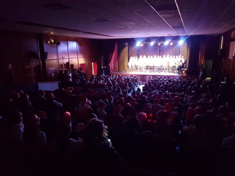 El alumnado del CEIP Lope de Vega, por cursos, así como el coro del centro, han llenado hoy el Teatro Municipal de villancicos, con motivo de la celebración de su Concierto de Navidad.