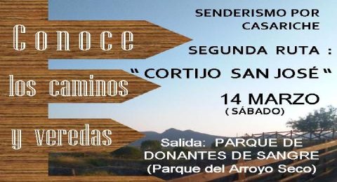 Continuando con el programa «CONOCE LOS CAMINOS Y VEREDAS DE TU PUEBLO», la Delegación de Juventud ha lanzado ya su segunda ruta. En esta ocasión, la propuesta es al «Cortijo San José», una ruta con un recorrido de unos 14 km, cuyo punto de salida será el Parque de Donantes de Sangre (Parque del Arroyo Seco) y que se llevará a cabo el sábado 14 de Marzo.