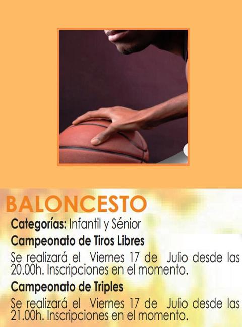 Mañana viernes 17 de Julio se celebran en nuestro polideportivo los Campeonatos de Baloncesto de Tiros Libres y de Triples, en categorías infantil y sénior.