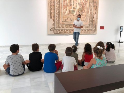 El alumnado del Campamento de Verano 2020 visitó ayer nuestra Colección Museográfica del Mosaico Romano, donde tuvo oportunidad de familiarizarse aún más con nuestro pasado romano y de admirar en primera persona nuestra joya patrimonial, nuestro Mosaico «El Juicio de Paris».