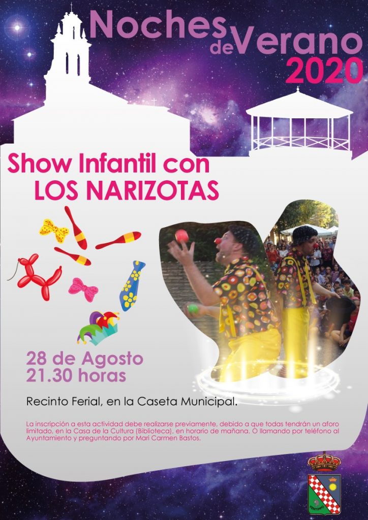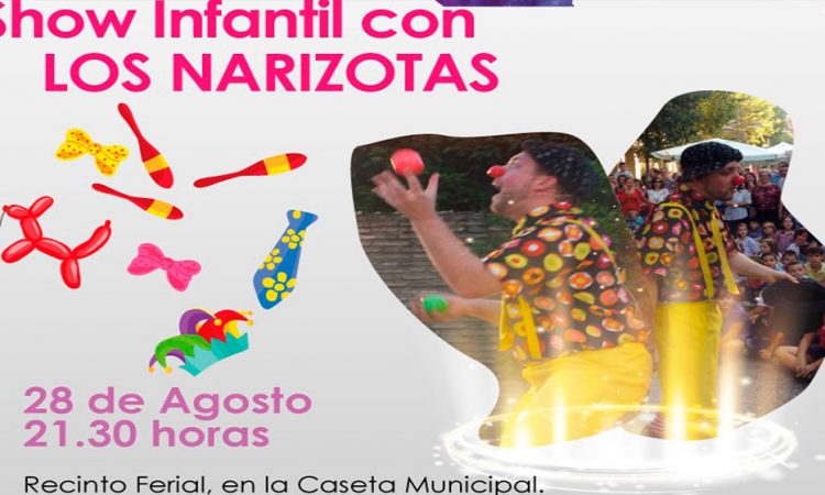 Nuevamente el Recinto Ferial acoge un espectáculo gratuito orientado a los niños y niñas de Casariche. En esta ocasión, se trata de un Show Infantil de la mano de «Los Narizotas», que comenzará a partir de las 21:30 horas.