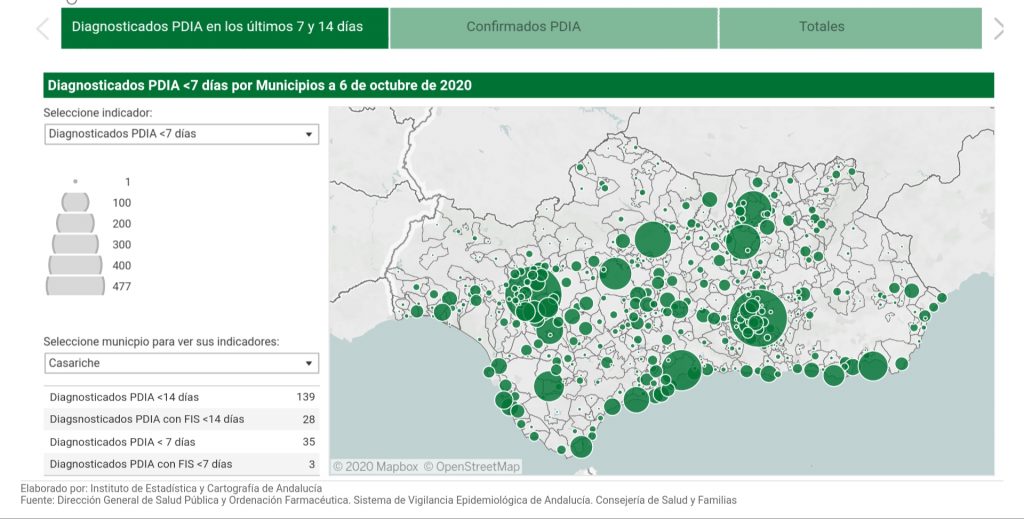 Una nueva actualización de las cifras oficiales de la pandemia se han hecho públicas por parte del Instituto de Estadística y Cartografía de Andalucía así como por la Consejería de Salud y Familias, las cuales recogen un aumento de 6 casos positivos en las últimas 24 horas.