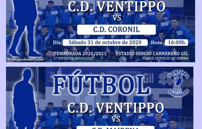 Tras la suspension el pasado fin de semana del Paradas Balompié – CD Ventippo por parte de la FAF, al haber dado positivo un jugador y haber quedado el equipo en cuarentena, nuestros seniors arrancan la temporada liguera este fin de semana, en el que disputarán dos partidos en casa: el primero, este sábado 31 de Octubre contra el CD Coronil, a las cuatro de la tarde, y el segundo, el lunes 2 de Noviembre, también a las cuatro, contra el CD Mairena.