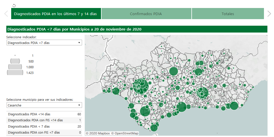 La incidencia acumulada o tasa de contagio por cada 100.000 habitantes asciende hasta los 1099’7 casos, más del doble de la media de la provincia de Sevilla. La cifra de «casos positivos activos» en los últimos 7 días se sitúa en los 20 casos.