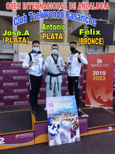 Además, el sábado 19 el club tomó parte también en el Open Internacional de Andalucía celebrado en Córdoba y se trajo tres medallas más: Félix Parrado Sánchez , bronce en categoría veteranos A (- 80kg), José Antonio Parrado Estrada: plata en categoría veterano A (+80 kg) y Antonio Giráldez Marín, plata en categoría veterano B (-80 kg). «Es la primera vez que el Club de Taekwondo Casariche participa en un open y fue una experiencia espectacular».