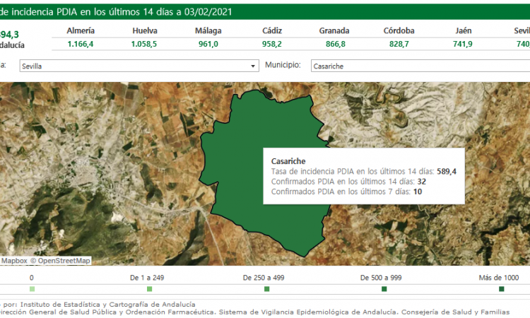 Tras la última actualización de datos oficiales sobre la incidencia de la pandemia provocada por la COVID19, y hechos públicos por el Instituto de Estadística y Cartografía de Andalucía y por la Consejería de Salud y Familias, se confirma un nuevo caso positivo en Casariche durante las últimas 24 horas.