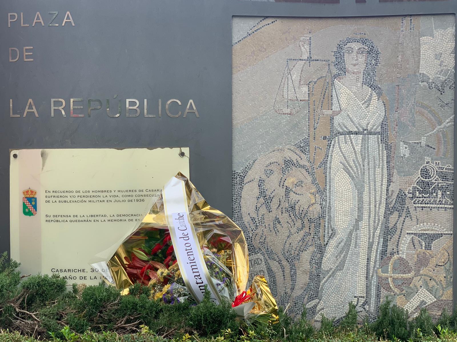 Hoy 14 de Abril de 2021 se cumple el 90 aniversario de la proclamación de la 2ª República Española y, como cada año, el Ayuntamiento, representado en esta ocasión por nuestro Alcalde, Basilio Carrión, y la 1ª Teniente Alcalde, Mª de los Santos Parrado, ha realizado una ofrenda floral en la Plaza de la República de Casariche, como homenaje y reconocimiento «a todas aquellas personas, vecinos de nuestro pueblo, que murieron defendiendo la Democracia, la Libertad y la Justicia Social que representaba la República”.