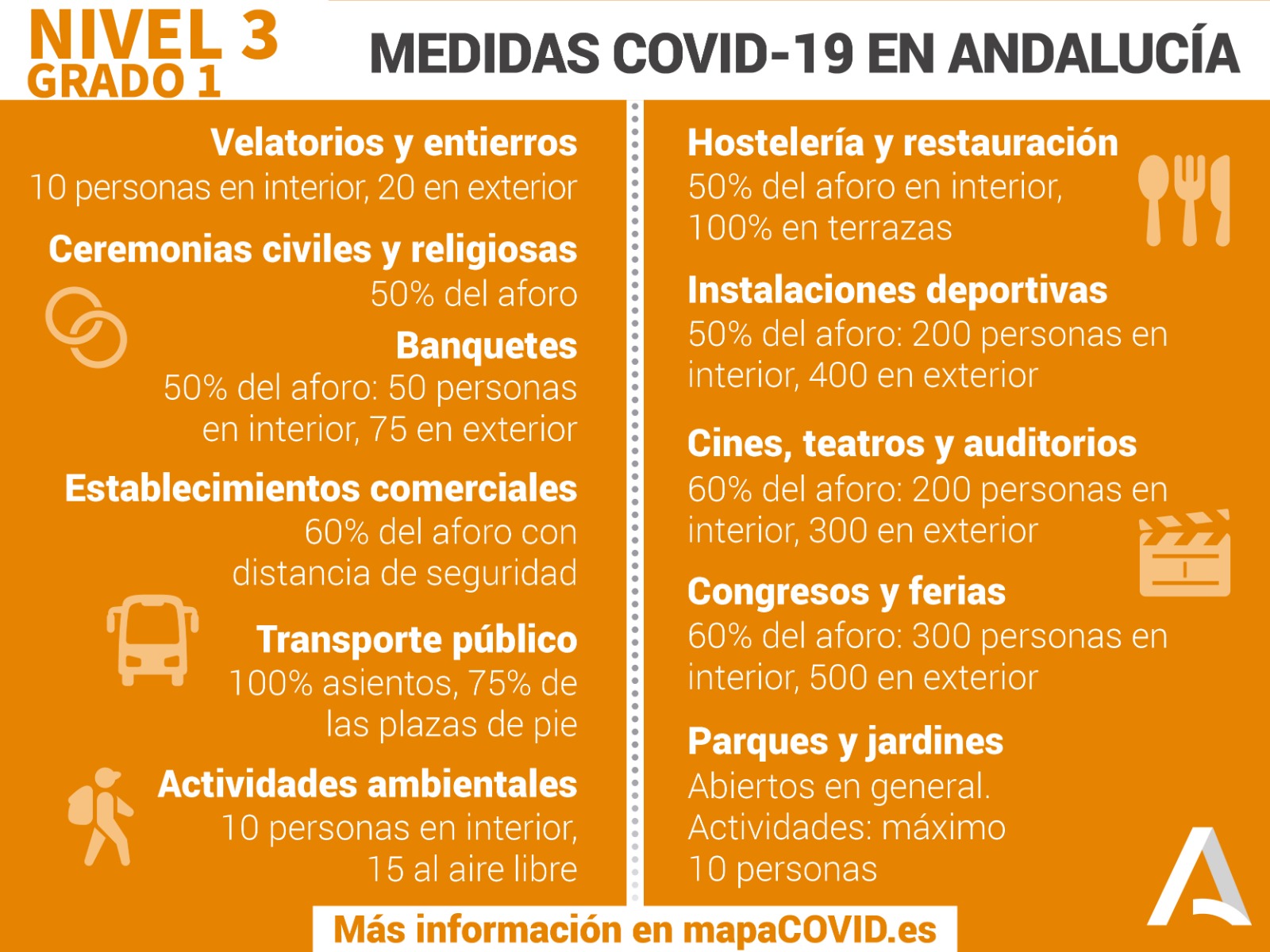 Nuestro municipio y toda la provincia de Sevilla, por normal general, pasan a nivel 3 grado I, lo que supone mayores restricciones tanto en aforos como en horarios comerciales.