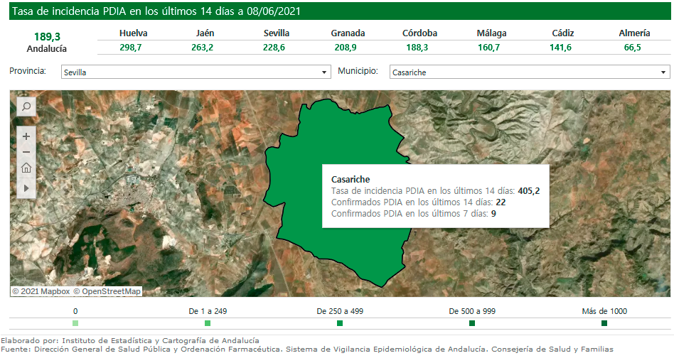 Tras la nueva publicación de los datos oficiales de la evolución de la pandemia por parte del Instituto de Estadística y Cartografía y por la Consejería de Salud y Familias, se confirma un nuevo contagio en Casariche durante las últimas 24 horas.