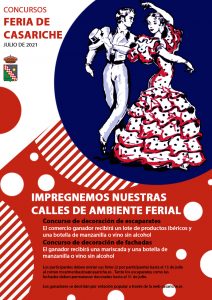 Asimismo, también se lanzan dos concursos de cara la Feria de Casariche con la intención de que comercios y vecinos y vecinas ayuden a impregnar nuestras calles del ambiente ferial, a la vez que se fomenta el comercio local. Para ello, se pone en marcha un concurso de decoración de escaparates comerciales y otro de decoración de fachadas.
