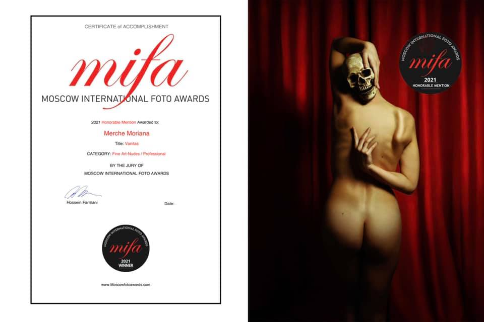 La casaricheña Merche Moriana, fotógrafa y artista visual, sigue cosechando triunfos por su trabajo. En esta ocasión, ha sido galardonada con una Mención de Honor por su obra «Vanitas» en la categoría profesional de Fine Art-Desnudo de los ‘Moscow International Foto Awards’ (Premios Internacionales de Fotografía de Moscú), cuya finalidad es la de reconocer, recompensar y exponer a fotógrafos talentosos de todo el mundo y presentarlos a la comunidad creativa en Rusia.