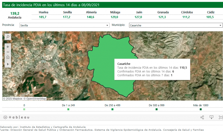 Tras el análisis de los últimos datos oficiales de la evolución de la pandemia derivada de la COVID19 publicados por el Instituto de Estadística y Cartografía de Andalucía y la Consejería de Salud y Familias, no se confirman nuevos casos positivos en Casariche durante las últimas 24 horas.