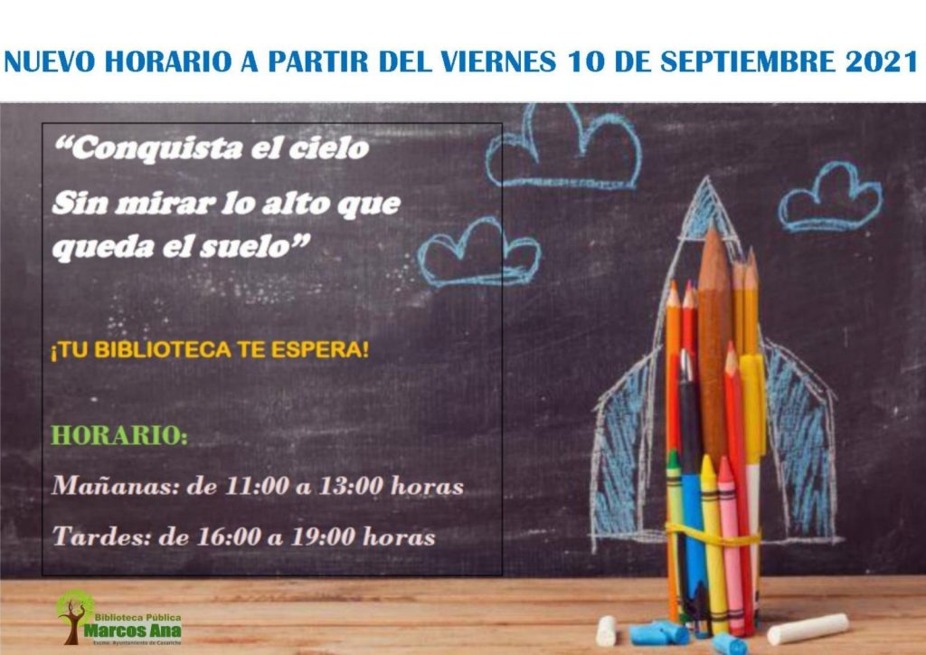 El próximo viernes 10 de septiembre empezará el curso escolar 2021-2022 e igualmente también la Biblioteca Municipal «Marcos Ana» volverá a abrir en horario de mañana y tarde.
